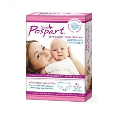 Las Braguitas de Indasec Pospart han sido diseñadas para los días posteriores al parto, especialmente indicadas para sujetar las compresas Indasec Pospart en los primeros días. Estas braguitas son un producto higiénico desechable e hipoalergénico. Su presentación es en un envase individual.