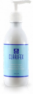 Clarifex Purificante es un gel limpiador destinado a la higiene y protección diaria de pieles con riesgo de infección. Su poder antiséptico reside en la combinación de tres sustancias: Digluconato de Clorhexidina, alcohol Diclorobencilico y Fenoxietanol, que actúan en sinergia para lograr una sensación de limpieza, suavidad e hidratación tanto en la piel del rostro como del cuerpo. Su fórmula, con Sorbitol y Ácido Láctico, garantiza una excelente tolerancia sobre todo tipo de pieles.