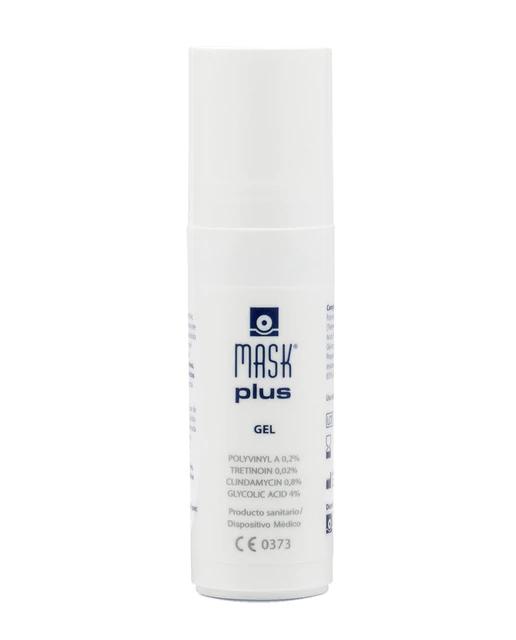 Mask® Plus es un producto sanitario específico para prevenir las complicaciones del acné provocadas por factores externos. Su fórmula, sin alcohol etílico ni perfume, contiene alcohol polivinílico capaz de formar una capa invisible no oclusiva que aísla y protege la piel de aquellos factores externos que pueden empeorar la patología del acné. El ácido glicólico y el ácido retinoico, gracias a su función exfoliante, favorecen la eliminación mecánica de las células muertas. La actividad accesoria de la clindamicina contenida en el producto contrarresta la proliferación bacteriana, manteniendo inalterado el nivel de carga bacteriana total.