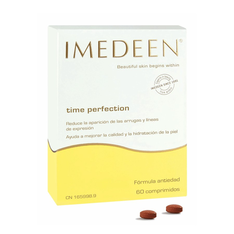 Es inevitable que con el paso de los años, la piel pierda firmeza, elasticidad y brillo, y aparezcan arrugas y manchas. Sin embargo, el envejecimiento de la piel se puede retrasar de manera eficaz si se elige el producto adecuado. Para mejorar la hidratación de la piel y evitar la aparición de arrugas y líneas de expresión, se ha diseñado Imedeen® Time Perfection. Su exitosa fórmula se compone de dos ingredientes naturales:
