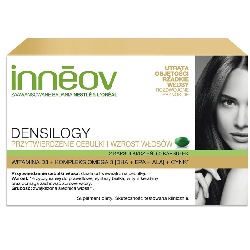 Inneov Densilogy 60 Caps es un complemento alimenticio que ayuda a mejorar la salud capilar. Puedes perder hasta 35,000 cabellos en un año, pero el estrés, los cambios hormonales o el envejecimiento también son factores que pueden alterar el entorno del bulbo, que es el centro de fabricación del cabello. Este producto se basa en un descubrimiento científico: el cabello está anclado a una membrana vital que protege el bulbo durante su fase de crecimiento. La innovación mundial de las investigaciones de Nestlé y L’Oréal presenta un complejo único que asocia el 100% de los aportes diarios recomendados en vitamina D, esencial para el organismo y que no suele estar presente en la alimentación, junto con ácidos grasos esenciales Omega 3 (DHA, EPA y ALA) y zinc, que favorecen el anclaje y el crecimiento capilar.