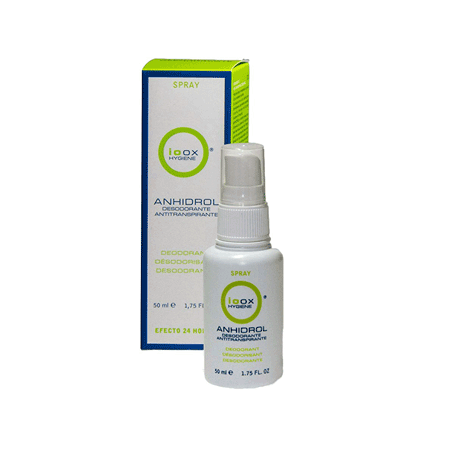 El IOOX Anhidrol Spray 50 ml está formulado con Clorhidrato de Aluminio (18%), que provoca un cierre parcial del poro, ayudando a reducir el exceso de sudoración y eliminando la flora productora de olores desagradables. Además, contiene Triclosán, un agente antimicrobiano que elimina la flora responsable de los indeseables olores asociados a la sudoración. Proporciona un efecto desodorante y antitranspirante de larga duración. Es apto para su uso en zonas como axilas, manos, espalda o periné.