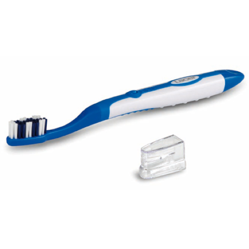 El cepillo cuenta con un botón de encendido y apagado que se activa con un solo clic. Funciona con una pila alcalina que se puede reemplazar. Su cabezal de reducido tamaño y forma de diamante facilita la limpieza en áreas difíciles de alcanzar, mientras que los ángulos pulidos y redondeados evitan rozaduras y posibles lesiones. Además, el capuchón aísla los filamentos del contacto exterior, manteniéndolos en óptimas condiciones. Por último, su mango con sistema "non slip" proporciona una amplia sujeción, evitando que resbale.