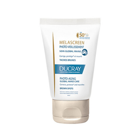 La crema MELASCREEN FOTOENVEJECIMIENTO MANOS SPF 50+ está formulada para corregir las manchas oscuras y alisar el micro-relieve cutáneo. Protege las manos de los daños provocados por el sol, mientras mejora visiblemente la textura de la piel.