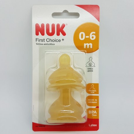 Todos los productos de la línea FC+ de NUK están diseñados con materiales de alta calidad y excelentes acabados. Esta gama de productos y accesorios ha sido diseñada para satisfacer las necesidades de las madres y garantizar la salud y seguridad de los bebés. Si has decidido alternar la lactancia materna con fórmula infantil, es muy importante que utilices un biberón con una tetina que cumpla con todas las necesidades de tu bebé. La Tetina FC+ Látex NUK presenta una forma anatómica que imita el pezón de la madre y es adecuada para la mandíbula del bebé. Está disponible en dos tallas: para bebés de 0 a 6 meses y para bebés de 6 a 18 meses. Además, el sistema de ventilación NUK AIR SYSTEM equilibra la presión en la tetina, lo que ayuda a prevenir la deformación de la mandíbula. Con sistema de ventilación NUK AIR SYSTEM mejorado que ayuda a prevenir los cólicos. Puede utilizarse con todos los biberones NUK First Choice y con el Recipiente para leche materna NUK.