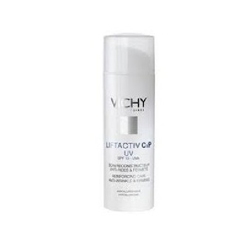 PROPIEDADES Vichy Liftactiv CxP UV reafirma y alisa las arrugas incrustadas. Su protección SPF 15 integrada previene el fotoenvejecimiento provocado por los rayos UV. Recargada de fibras, la piel se vuelve más elástica y firme. Las arrugas, incluso las incrustadas, se alisan y corrigen.